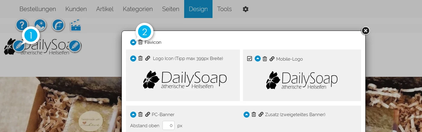 Sie finden daher im Adminbereich einen Favicon-Upload unter DESIGN -> LIVEDESIGNER im Logo-Popup: